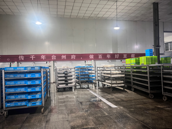在菽康的生产车间,我们见证了一颗豆子的华丽蜕变。“白水洋豆腐以其嫩滑口感而闻名,但曾因保鲜期短而受限于本地市场。有人曾告诉我,这种豆腐只能在临海的菜场销售,难以远销。”然而,张玲萍坚信‘酒香不怕巷子深’,她多年专注于提升豆腐的品质。如今,菽康生产的白水洋豆腐已经通过明康汇、叮咚买菜等平台,走进了千家万户,成为消费者餐桌上的美味佳肴。