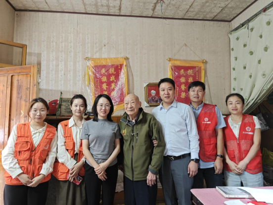 本网讯 2024年10月11日,在中华民族传统的敬老节日——重阳节之际,我会秘书长蔡鸿鹏、志愿单位泰隆银行天台支行行长林通、天台县红心社党支部书记林华强及志愿者们组成的慰问团队走进天台多名抗战老兵的家庭。