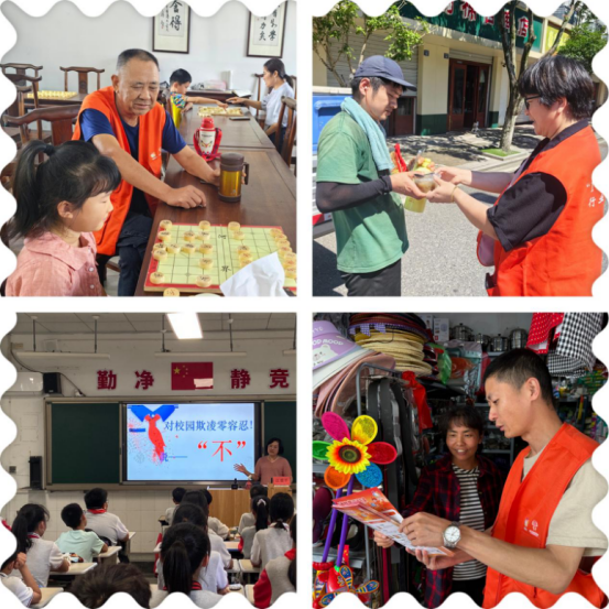 “综合志愿队”通过发放宣传册,对沿街商户进行宣传反诈知识、消防安全知识等,助力诚信经营和安全生产,提醒有关商户做好食品安全等问题,强化了社区的公共安全意识。